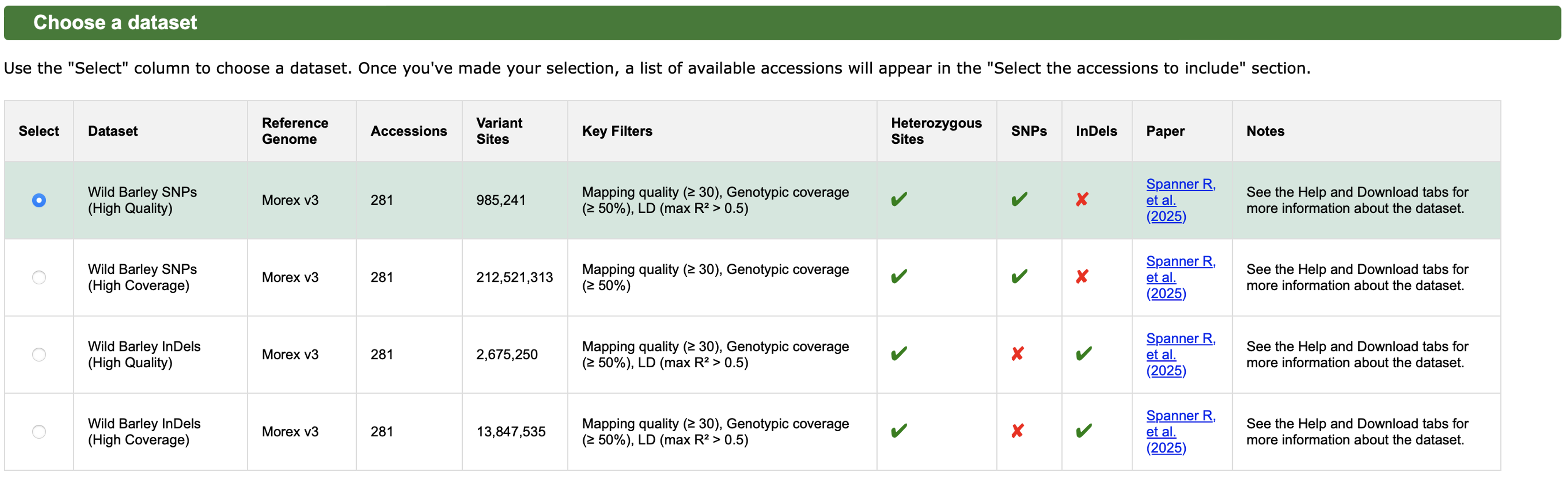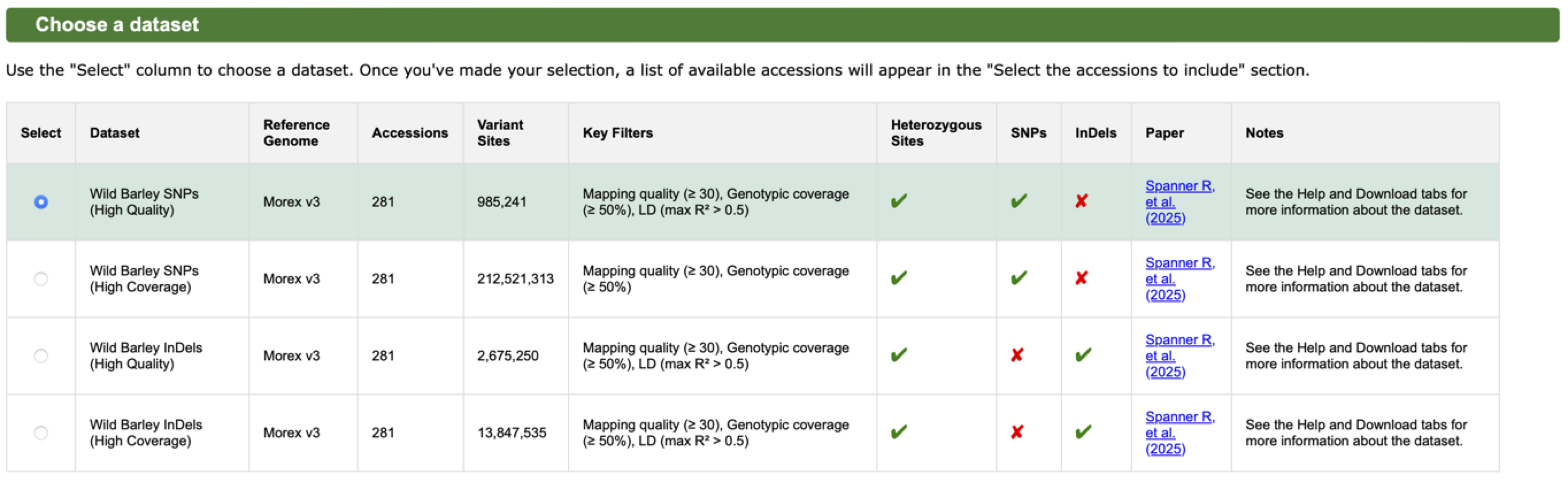 February 2026: SNPversity 2.0 with diverse wild barley (Hordeum vulgare ssp. spontaneum) accessions added on GrainGenes. The web-based tool facilitates access to variant data and visualizing genetic diversity and is accessible through https://graingenes.org/snpversity/