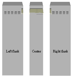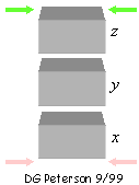 (g) Cut the center gel block (containing unstained DNA between 100 and 350 kb) transversely at two spots to produce three agarose blocks of roughly equal size. These blocks (from bottom to top) are referred to as x, y, and z, respectively. |