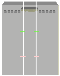 (d) Align the stained flanking gel pieces and examine on a UV light box. If the digestion worked as planned, most of the genomic DNA should lie between 100 and 350 kb. Using a scalpel, make incisions in the flanking pieces marking the 100 kb and 350 kb borders (pink and green lines, respectively). |