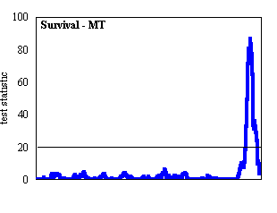 The simplified Composite Interval Mapping (sCIM) approach available in the MQTL software package (Tinker and Mather, 1995) was used for QTL detection in conjunction with the skeleton linkage map. Each data set was analyzed with 1,000 permutations, a 5 cM walk speed, and a Type I error rate of 5%. Eighteen background markers were used, and these markers were spaced evenly across the seven linkage groups. QTL analyses were conducted for eleven phenotypes. QTL for nine of these phenotypes - heading date at 8, 16, and 24 h with and without vernalization; field heading date; and Montana and Oregon field survival - were described by Pan et al., (1994) based on a MAPMAKER/QTL analysis and a 78-point map. QTL for crown fructan content and LT50 (temperature lethal to 50% of a test population) were described by Hayes et al. (1992) using a 33-point map and QTL-STAT. Thus, this report describes QTL for previously-reported phenotypes using a more complete linkage map and contemporary QTL detection procedures.