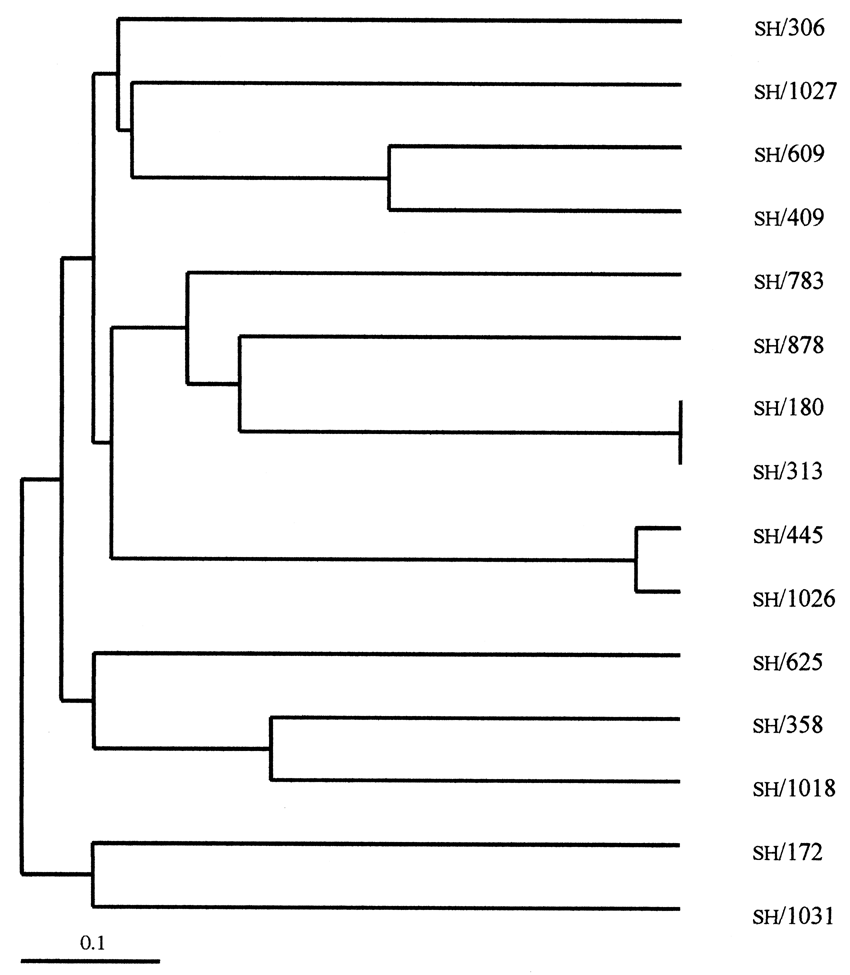 Fig. 5. Dendrogram of Jaccard's distances among the 15 synthetic hexaploids, Flycatcher, and 'Mayoor//TK SN 1081/Ae. tauschii (222)' using UPGMA as the clustering method.