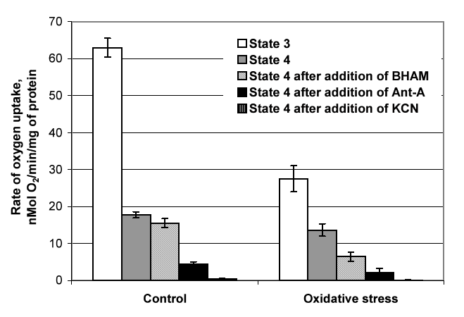 on oxygen uptake by winter wheat mitochondria isolated from nonstressed